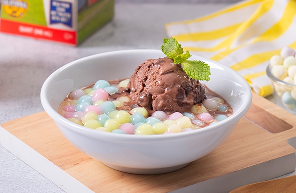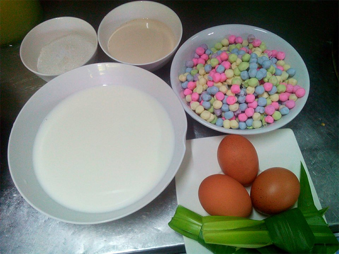 1.Make the dough: Mix glutinous rice flour with warm water until smooth. Then roll into tiny balls about the size of the pearls. You can add natural colorings during the mixing process in case you want your rice balls to be colorful.