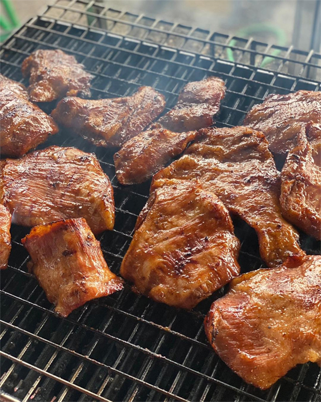 2. Start the fire and grill pork necks over charcoal until outside starting to turn brown and the fat caramelize. Then slice your pork neck into small pieces.