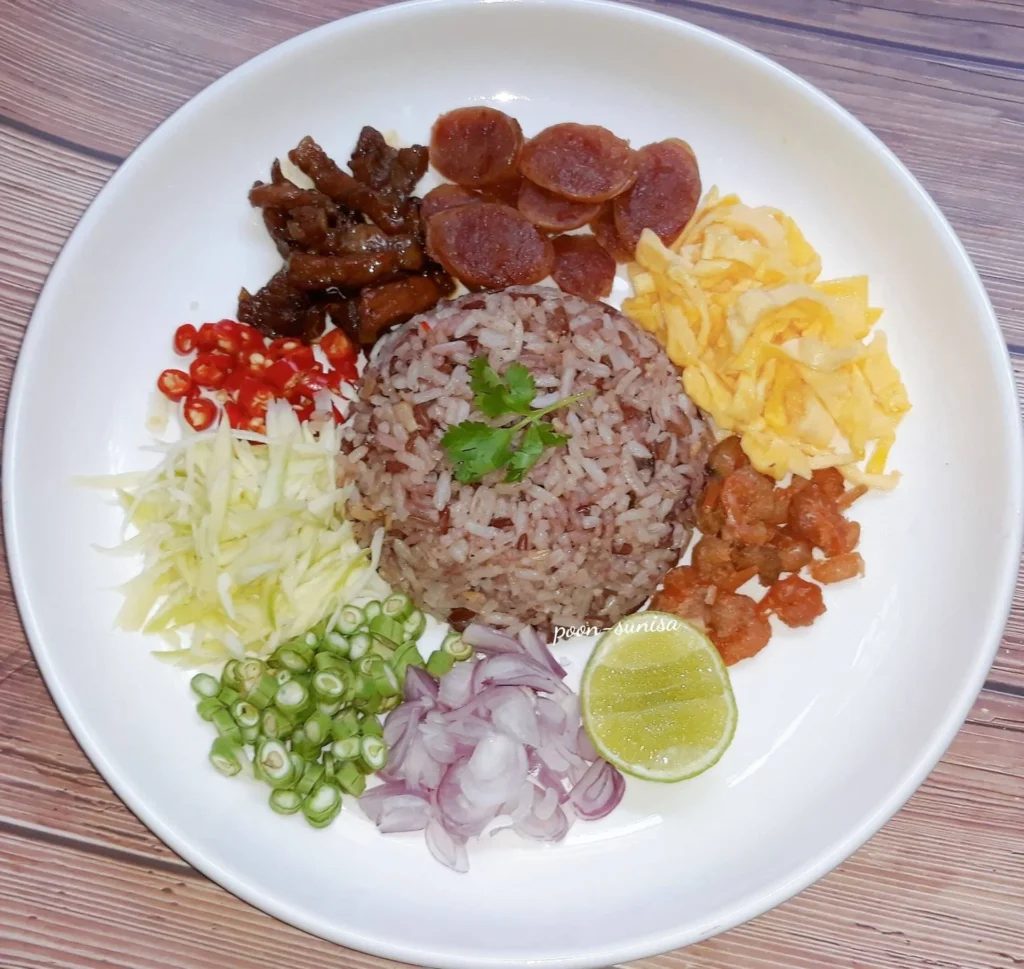 Its origin traces back to the royal kitchens of Rattanakhosin era. During the time shrimp paste was consider too pungent for refined palates, however palace chefs found many ways to adapt, develop and elevate this strong ingredient by balancing it with sweetness, acidity, and texture. The result of this was a dish for royalty: fried rice infused with shrimp paste, served with several condiments like sweet pork, green mango , shallots, chilies, omlete strips, long beans, and lime. Over the time shrimp paste fried rice left the palace and became one of the most beloved street food.