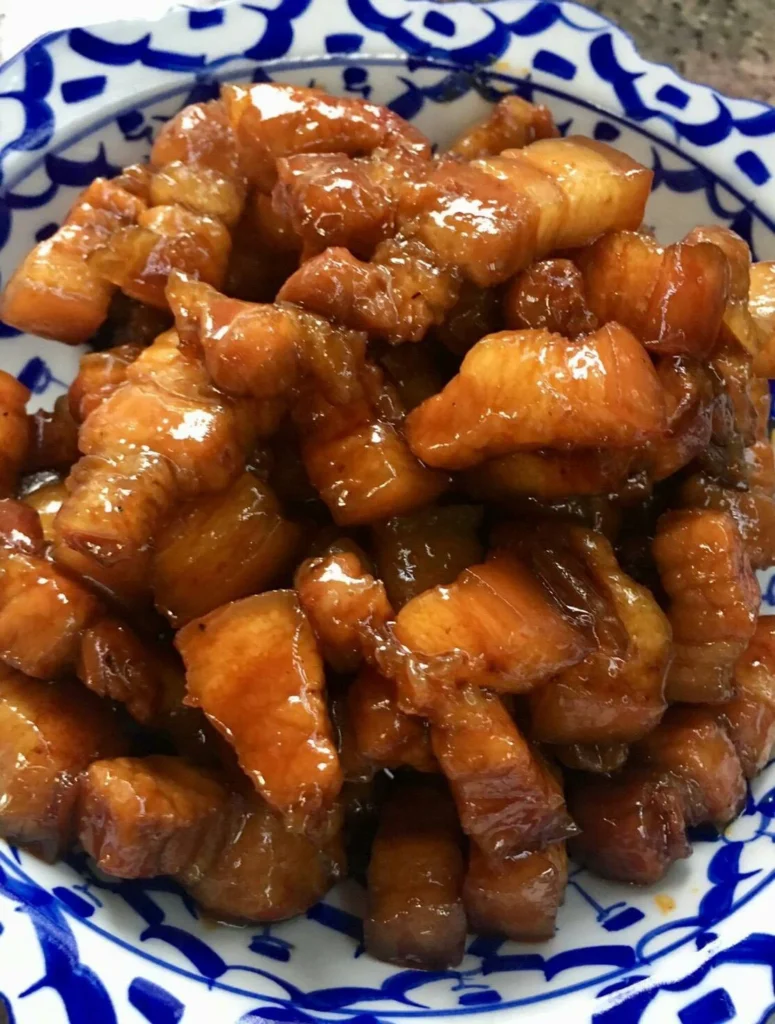 - Add water and let your sweet pork simmer for 10 minutes, after your pork belly starts to feel tender and it’s dry out put it to rest.