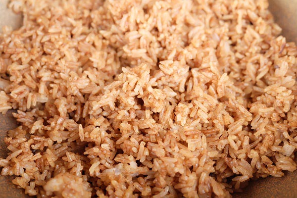 4. Now we make our fired rice, wait until the oil is hot then we add shrimp paste to the pan and stir until it smells nice, then add rice and turn to high heat. Cook until it’s perfectly mixed.